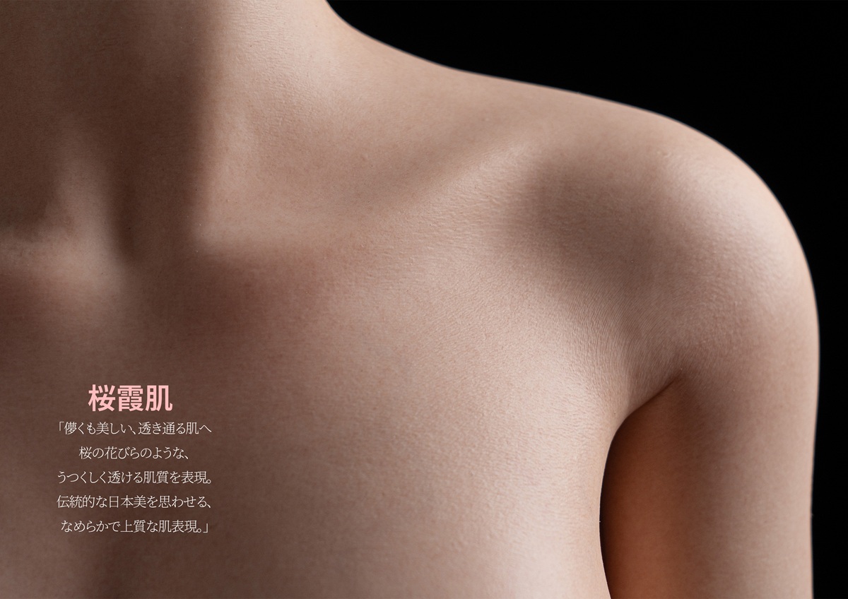 Irontech Doll 東方シリーズの本体は標準で桜霞肌(スプレーテクスチャー技術)を採用しています。「桜霞(さくらがすみ)」とは、遠くから見ると桜の花が霞のように見える風景を指す美しい表現で、満開の桜がまるで霞がかかったように白く見える様子を表しています。